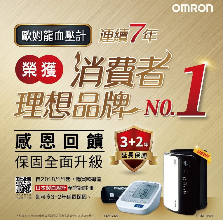 歐姆龍血壓計(日本製)保固全面升級3+2年
